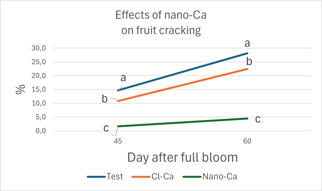 - Reduction of fruit cracking thanks to the formation of calcium pectate in the middle lamella of the peel cell walls.
