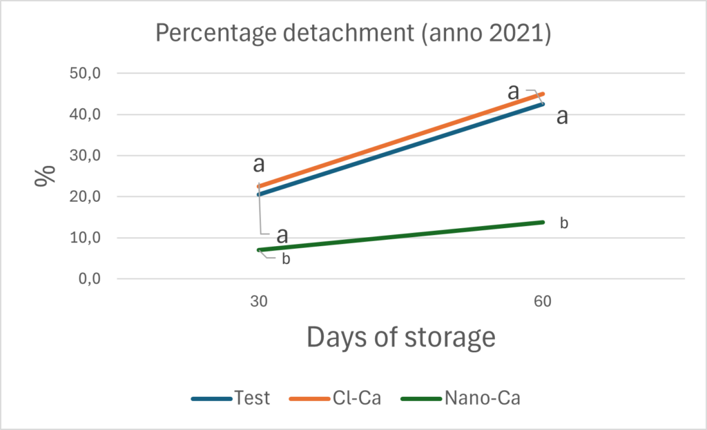 - Increased calcium content in the berries, rachis, and abscission zone. This is because nano-Ca, compared to traditional calcium-based fertilizers, is more easily absorbed by the plant.