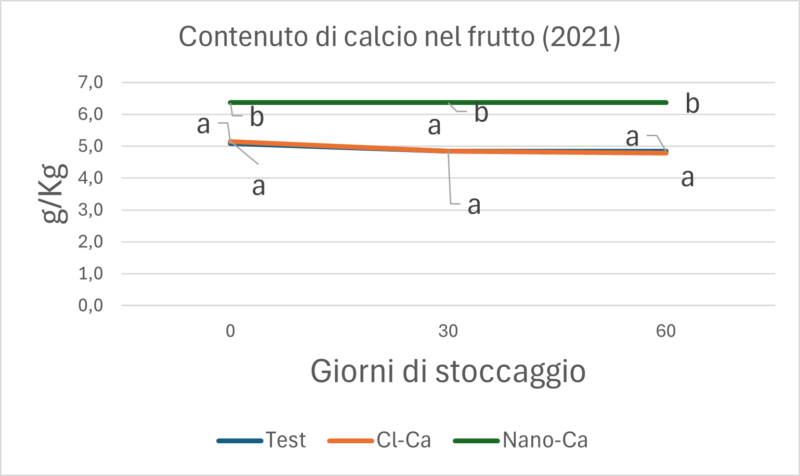 Lo studio ha osservato che esiste un correlazione inversa tra contenuto di calcio e contenuto di etilene, che è un ormone che ha effetti cruciali sulla maturazione dei frutti: la minor presenza di etilene contribuisce a sua volta a ridurre i pectati idrosolubili (WSP) rispetto a quelli meno solubili (CSP E SSP – pectati di calcio ) garantendo una maggiore compattezza dei frutti.