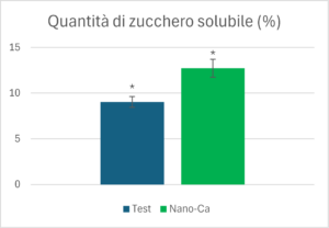 Questi studi hanno inoltre rivelato che il nano-calcio può favorire la sintesi del saccarosio e il trasporto dello stesso nel floema, aumentando significativamente il contenuto di zuccheri solubili nei frutti.