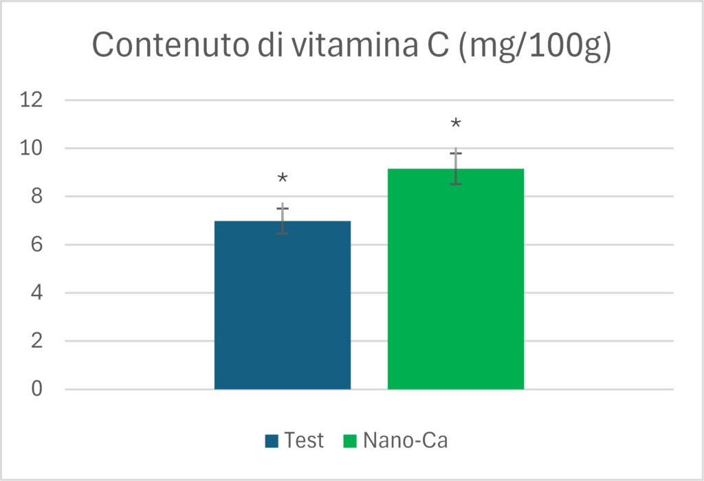 L’applicazione di questa nuova forma di calcio ha contribuito ad aumentare gli zuccheri e la vitamina C nel frutto migliorando la qualità organolettica.